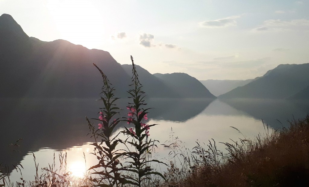 Daadkrachtig volk dus. Ildsjel volk – nog zo’n fantastisch woord dat staat voor vurige ziel met de grootste impact. Alhoewel ‘sterk gepassioneerd’ niet de eerste indruk is die ik van het Noorse volk kreeg. Bescheiden, vriendelijk en mondiaal wel. Bewust van de natuur, van de gezondheid en dus het belang van tijd doorbrengen met familie en vrienden. Een quiz op de laatste ‘bonte’ avond van de vakantie, leerde mij dat bijna 90% van de Noren een buitenhuis of hut heeft in de fjorden om zo sportief de weekenden door te brengen met elkaar. In het landschap van The Lord of the Rings, serieus, je belandt echt op de filmset en vraagt je soms af of er Hobbits in de met gras bedekte huizen wonen, verval je van de ene in de andere landschapsverbazing. Klein en nietig wordt je als je in je kayak door de lokale Gandalf undercover wordt begeleid en de oude taaie verteld over het ontstaan van deze bizarre fjorden.